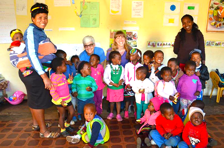 This past June, Linda Brasaemle, a Music Together Teacher Trainer from Minneapolis, MN, had the opportunity to go to South Africa to work with high-risk communities outside of Durban. Linda, her daughter, and two friends volunteered with an organization called HOPE Worldwide South Africa, and took donated funds, classroom materials, and supplies to several Early Childhood Development Centers in the region. Music Together Worldwide also lent a hand, so Linda was accompanied by a suitcase full of egg shakers!