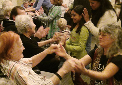 Back in the fall of 2010, Jeanne was approached by one of her teachers about organizing an intergenerational class at Atria Manresa, an assisted-living facility in Annapolis, Maryland. Since Jeanne was now an “empty-nester,” it seemed the perfect time to begin this venture. “When I was raising my boys, I only had so much energy to devote to Music Together,” explains Jeanne. “When my youngest went away to college, then I could focus on other things. I already knew that there was this wonderful sense of community in our Music Together classes, so I took time to figure out: How do we reach out to the world at large?”