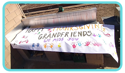 When COVID-19 hit, classes had to be suspended. In order to keep the music going, Director Keri Dahl arranged for the seniors to receive weekly videos of Music Together Online classes. And, when it was safe for families to gather outside, Dahl Studio arranged community card-signing and crafting events every month or two, and then took the crafts, cards, and banners to the center to help brighten the residents’ days and help them through the quarantine.