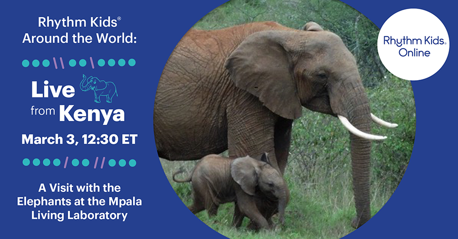 This semester, our Rhythm Kids are drumming and jamming along to rhythms inspired by elephants. On Wednesday, March 3, at 12:30 PM ET, we’re going on a virtual field trip to see these amazing animals in their natural habitat . . . at the world-renowned Mpala Research Centre in Nanyuki, Kenya. While showing us around, Mpala Executive Director Dr. Dino Martins will share elephant facts kids will love, talk about the role families everywhere can play in conservation, and swap musical stories with Rhythm Kids creator Tom Foote. Bring your elephant questions and something to drum on . . . ’cause you know we’ll be making music, too! Everyone is welcome to attend this free event. Geared for ages 3+ (and grownups!).