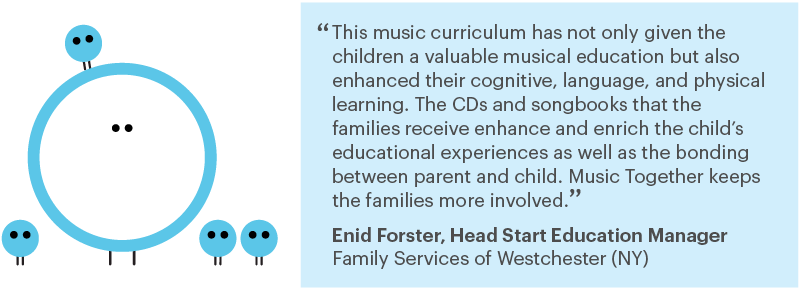 Music Together programs have been successfully integrated into hundreds of classrooms across the country to comprehensively raise the quality of learning, both in class and at home.
