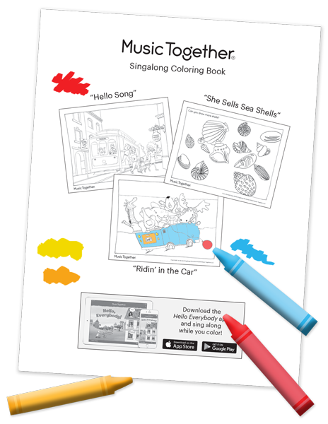 Don't forget to sing while you color. The songs are all available free on the Music Together Hello Everybody app! |