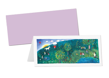 This package of ten 9” x 4” charming notecards with lavender envelopes feature artwork from the May All Children Singalong Storybook, which illustrates the Music Together song of the same name. Blank inside.