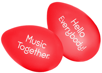 Easy-to-clean plastic egg shakers with Music Together logo. Baby-friendly with a length of 2.375". Age-rating: 0+.
