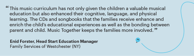 Music Together® curricula have been successfully integrated into public schools across the country to comprehensively raise the quality of learning, both in class and at home.